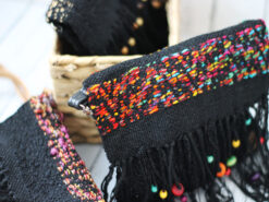 Crna večernja torbica sa šarom od plišanog prediva,na preklop. Potpuno ručno izrađena od tkanog platna.