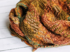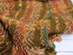 Zimski mekani unisex šal od akrilne vune u bojama prirode, izrađen na razboju za ručno tkanje.