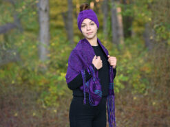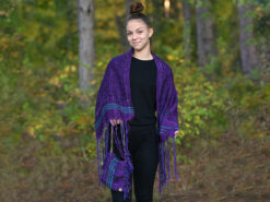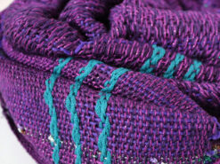 Pamučni šal ogrtač, idealan za večernje izlaske i šetnje. Njegova neodoljiva lepota je u mističnoj ljubičastoj boji i diskretnim tirkiznim prugama koje zajedno sa tkanom čipkom daju osećaj otmenosti.