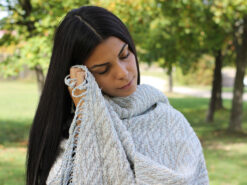 Šal ogrtač inspirisan freskom „Beli Anđeo“ i Arhangelom Gavrilom. Zagrlite sebe dijamantskom šarom u kombinaciji pamuka, lana i akrila. Ovaj šal će ispuniti vašu potrebu za nežnim i mekim dodirom.