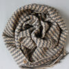 Mekani zimski šal, istkan na razboju za ručno tkanje. Izrađen je od fine akrilne vune i pamuka uz prelivajuće ljubičasto sive tonove. Zimski tkani šal, inspirisan rapsodijom boja jedne ptice.
