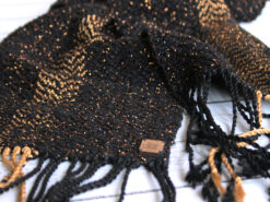 Elegantni crni šal sa bakarnim sjajem i zlatnom šarom od pamuka. Može se nositi uz kaput ili kao marama.